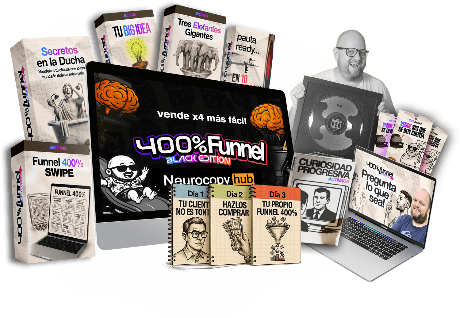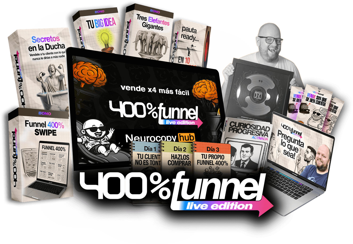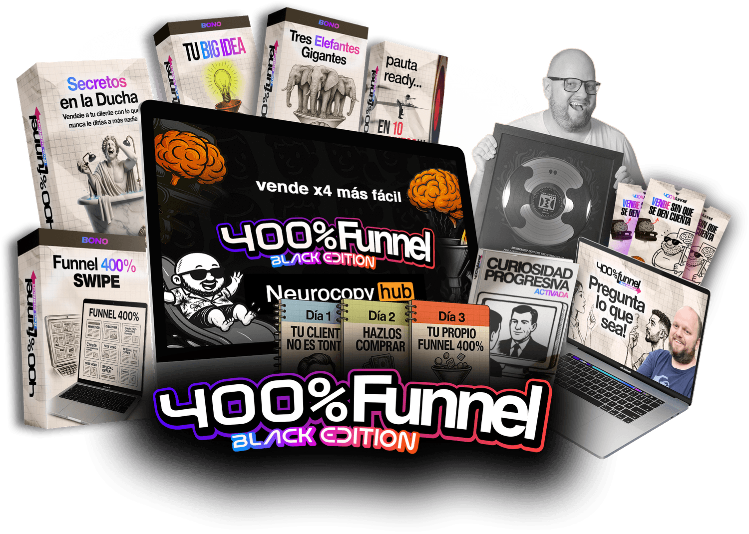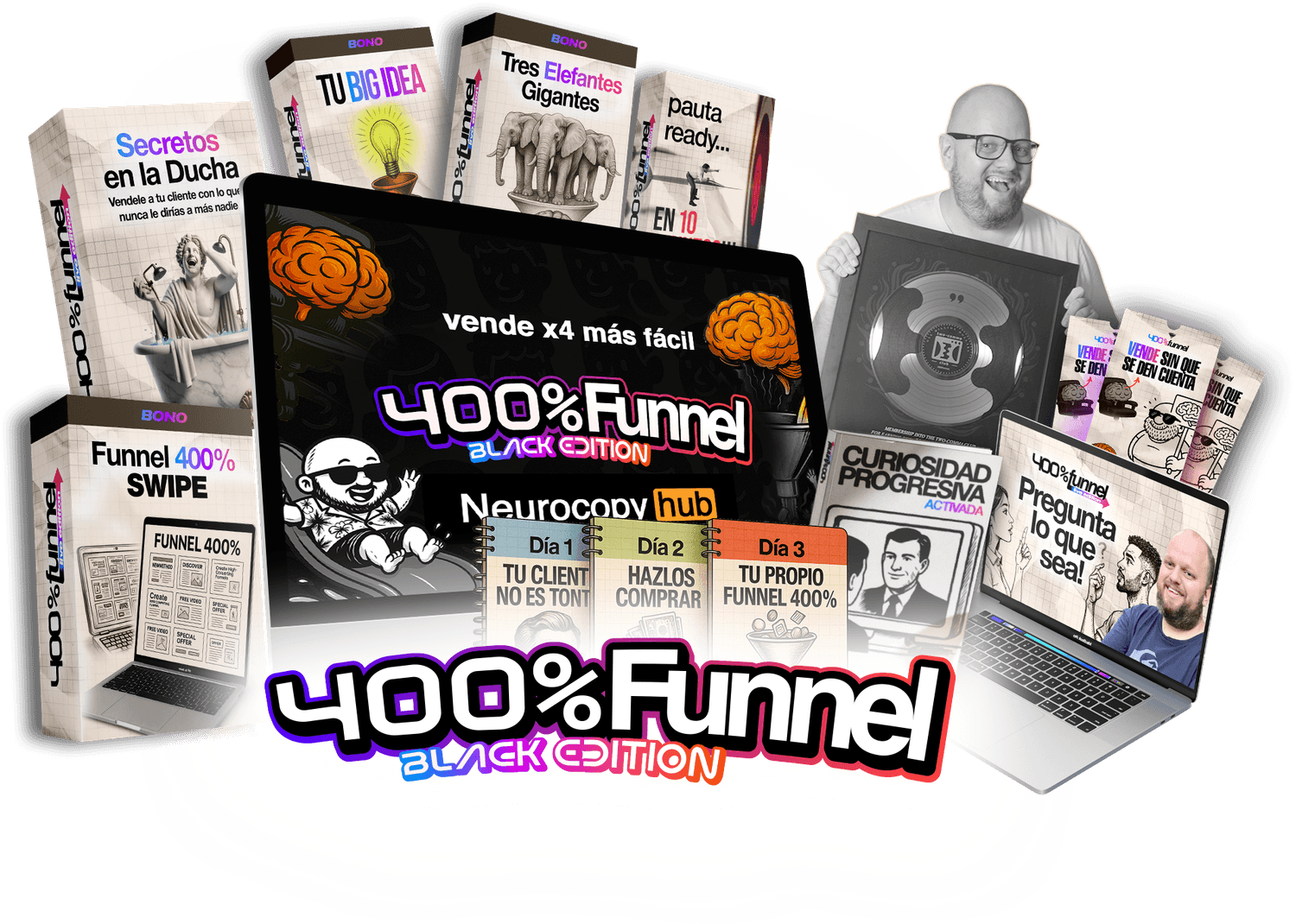 Funnel 400% BLACK Edition son 3 días intensivos donde aprenderás a dominar una estructura que consigue clientes 4 veces más fácil, rápido y sin tanto esfuerzo.